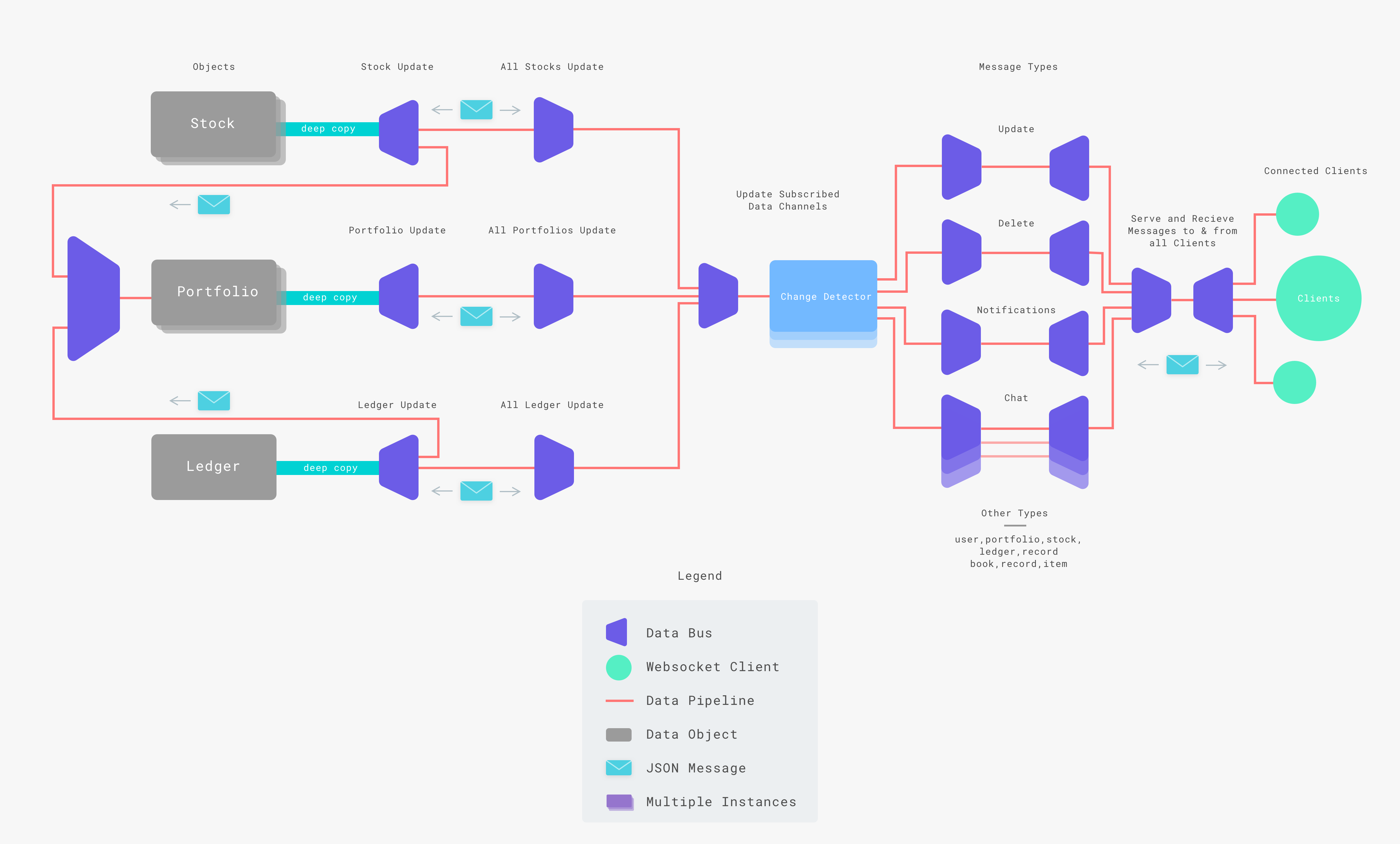 The current version of the backend is built upon a real-time websocket connection model. Simply put, whenever anyone does anything within Mockstarket, everyone gets notified at the same time. When a stock price changes, everyone sees the change happen at the exact same time. When a user sends a chat message, everyone sees the message appear in the chat window at the same time.