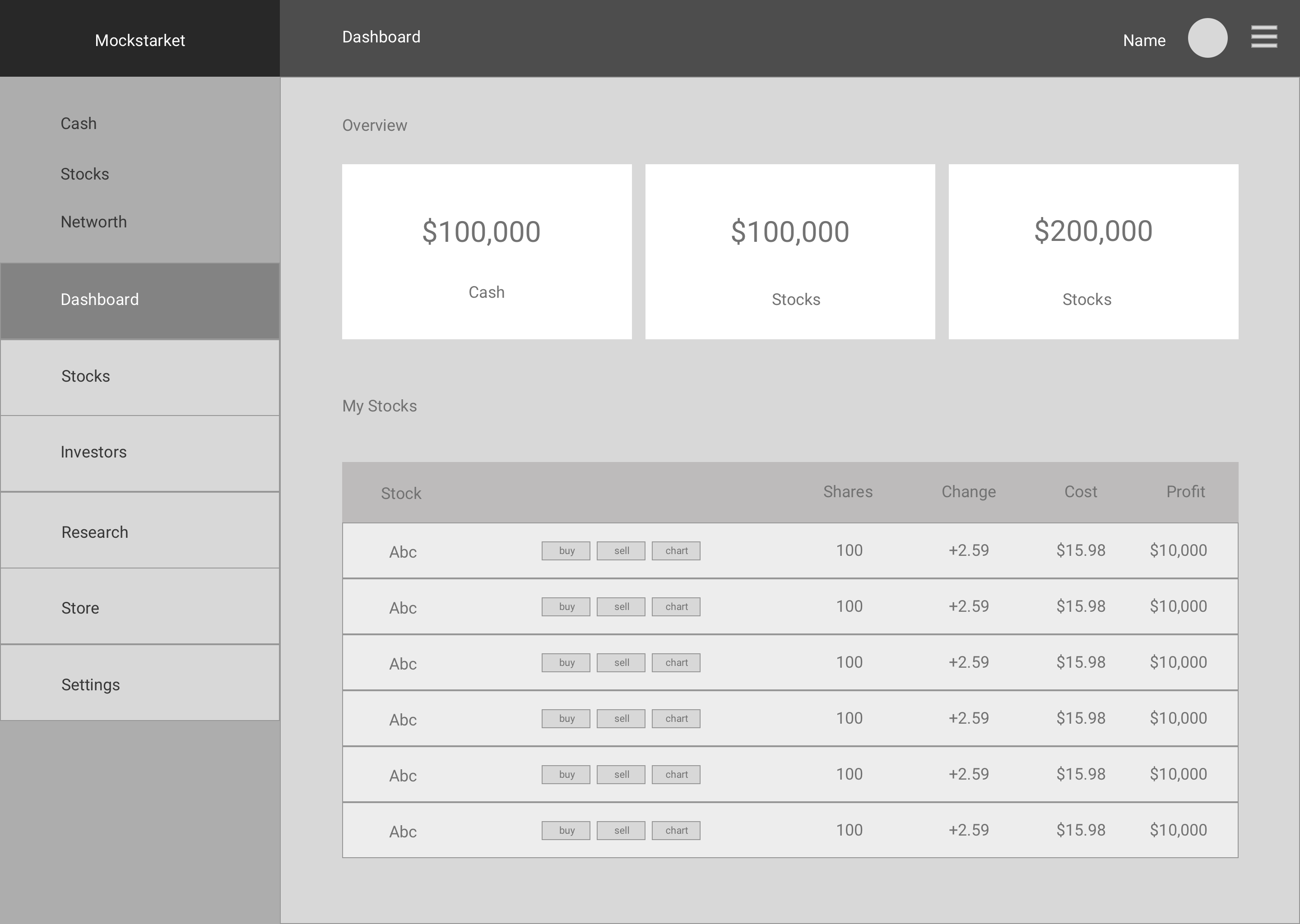 There is still a lot of work to be done on the UI design of Mockstarket and the finish line is very far off in the distance. My initial goal was to design the overall look and feel of the interface, and then expand on it as needed. I believe that what I have designed thus far has worked well for what Mockstarket currently offers to users. In time, I would like to take another pass at the design at a few of the current features, as well as design more features that can be added into the existing interface.