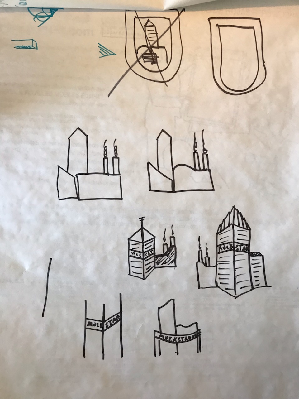 Preliminary sketches showing the assortment of concepts I shot down in order to get to the final design.